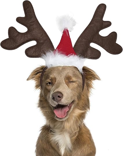 Amazon Com Bwogue Diadema De Reno Con Gorro De Papa Noel Para Mascotas Disfraz De Navidad Accesorios Para Perros Y Gatos M Kitchen Dining
