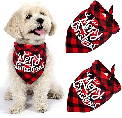 Amazon Com Yodofol Bandana De Navidad Para Perro Bufalo A Cuadros Reversible Triangulo Felices Navidades Accesorios Para Perros Gatos Mascotas Rojo Rojo Kitchen Dining