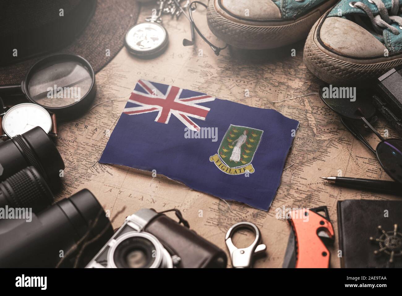 Premium Photo British Virgin Islands Flag Between Traveler S Accessories On Old Vintage Map Overhead Shot