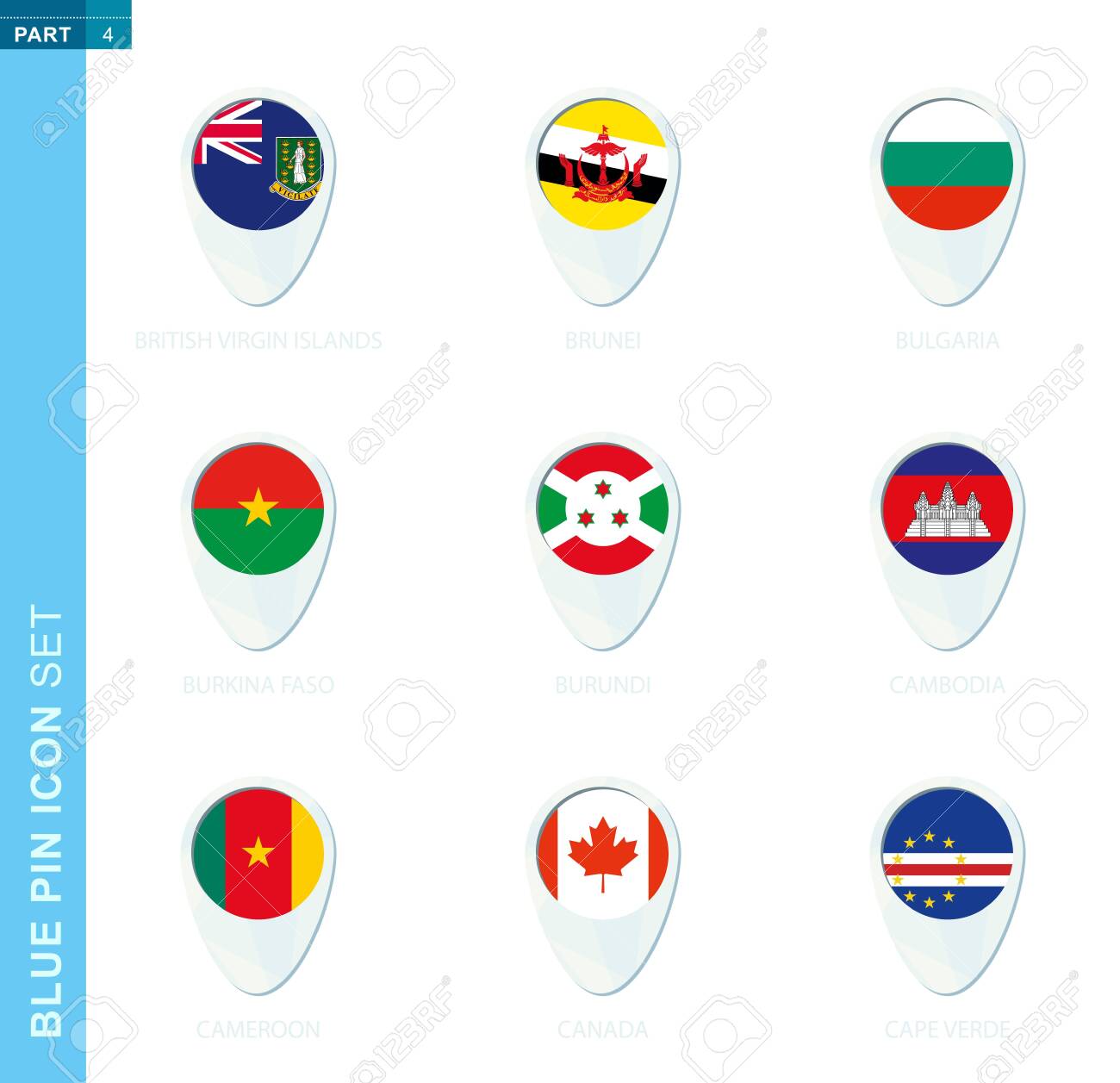 Pin Flag Set Map Location Icon In Blue Colors With Flag Of British Royalty Free Cliparts Vectors And Stock Illustration Image