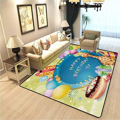Amazon Com Alfombras Modernas Para Cumpleanos Infantiles Para Fiestas Tematicas Velas Globos Corazones Impresion De Imagen Alfombra Moderna Para Interiores Para Ninos Color Rosa Y Naranja Multicolor 09 Kitchen Dining