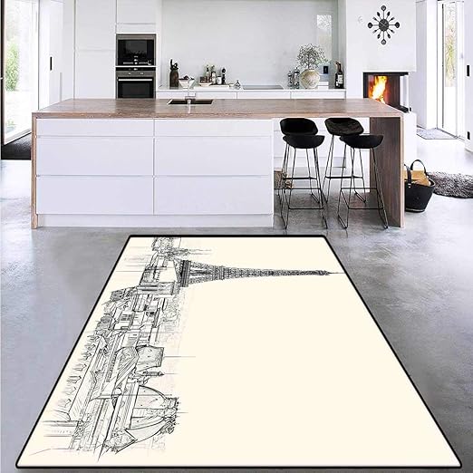 Amazon Com Alfombra De Piso Para Ninos Diseno De Paris Sobre Tejados Para Sala De Estar Colorido 01 Kitchen Dining