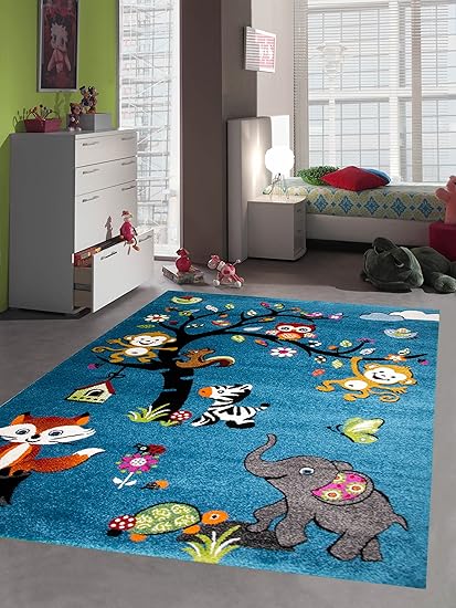 Carpetia Alfombra Los Ninos Alfombra De Juego Zoologico Animales Elefante Zorro Tortuga Mono Ardilla Cebra Buho Turquesa Grosse 80x150 Cm Amazon Es Hogar
