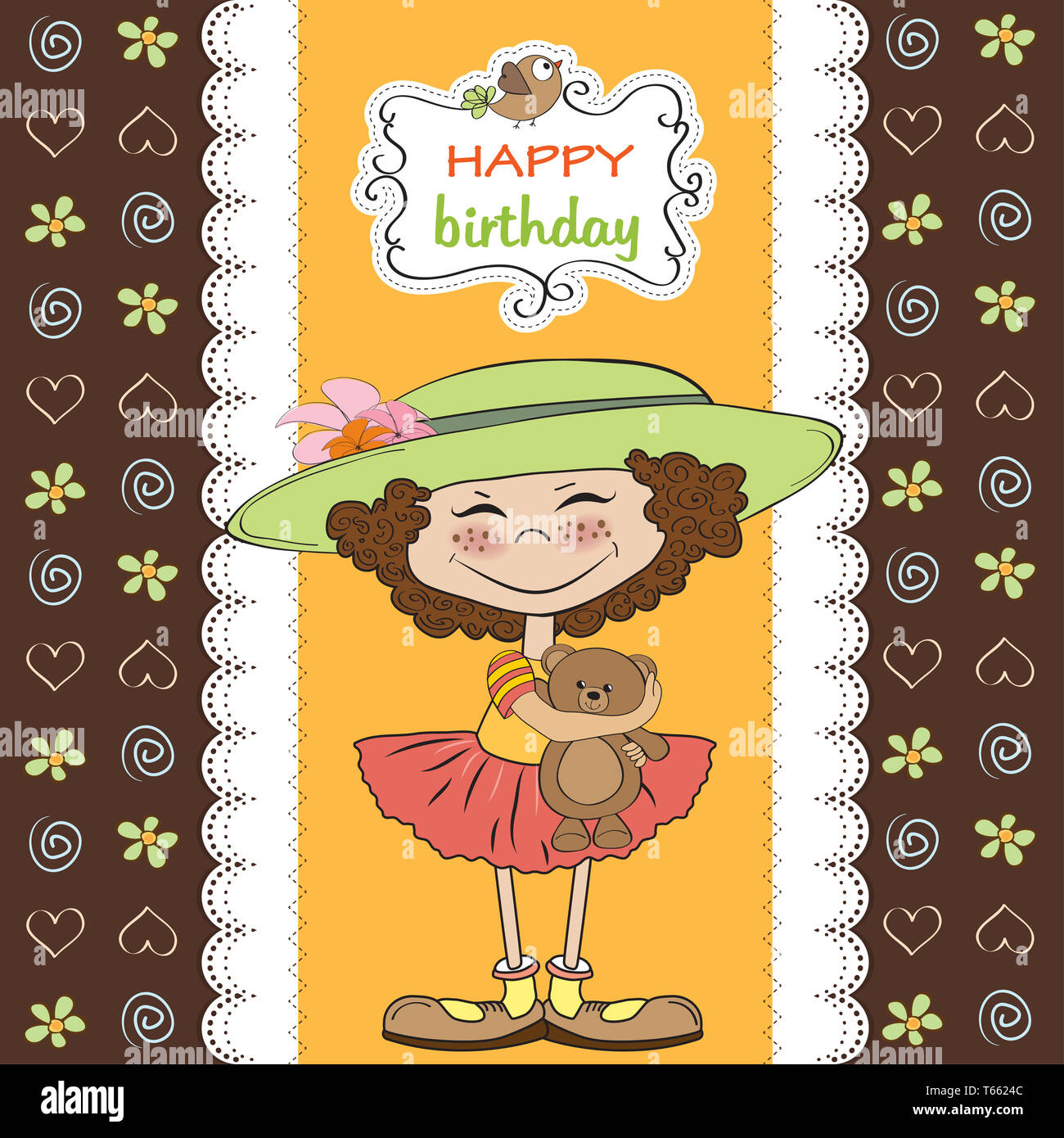 Tarjeta De Felicitacion De Cumpleanos Linda Con La Nina Y Su Oso De Peluche Fotografia De Stock Alamy