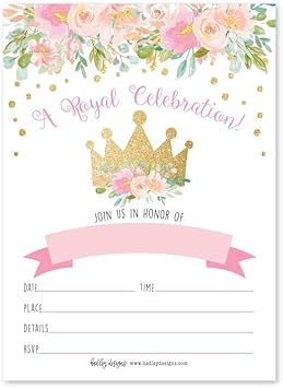 Amazon Com 25 Invitaciones De Fiesta De Princesas Florales Con Purpurina Sintetica Para Invitaciones De Cumpleanos De Reina Real Corona De Ninos Rosa Y Dorado Con Tematica De Confeti Idea De Suministro De