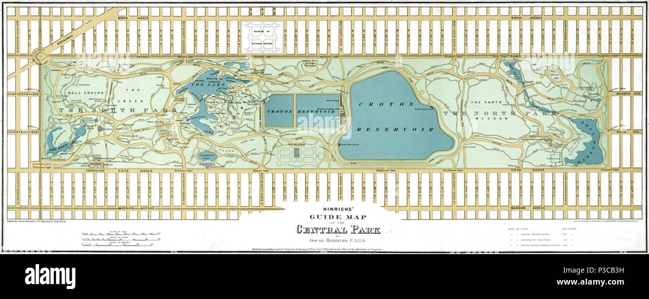 Ingles Mapa De Central Park En Nueva York Desde 1875 La Escala Es 1 7 500 El Norte Esta Arriba A La Derecha 1875 Oscar Hinrichs 2 Central Park 1875 Restaurado Fotografia De Stock Alamy