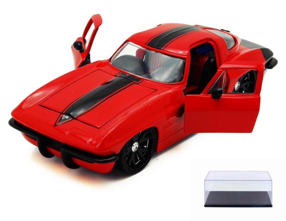 Diecast Car Display Case Package 1963 Chevy Corvette Stingray Red Jada Toys Bigtime Muscle 1 24 Scale Diecast Model Toy Car W Display Case Walmart Com Walmart Com