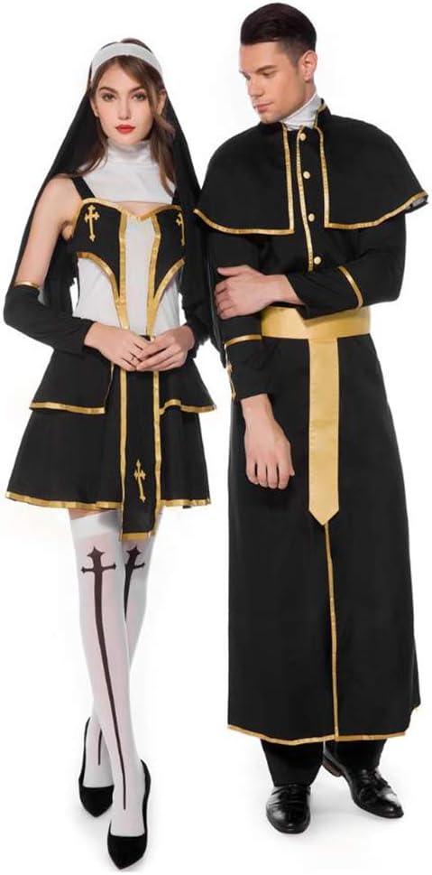 Amazon Com Mkulous Couples Halloween Costumes The Day Of The Dead Sexy Cosplay Priest Nun Uniform Accessories Female Male Adults Stage Outfit For Girls Boys Men M Sports Outdoors
