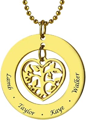 Amazon Com Ailin Heart Family Tree Name Necklace Gold Engraved Kids Name Necklace Mother Always Love Her Family Heart Jewelry Gold Plated 14 Clothing
