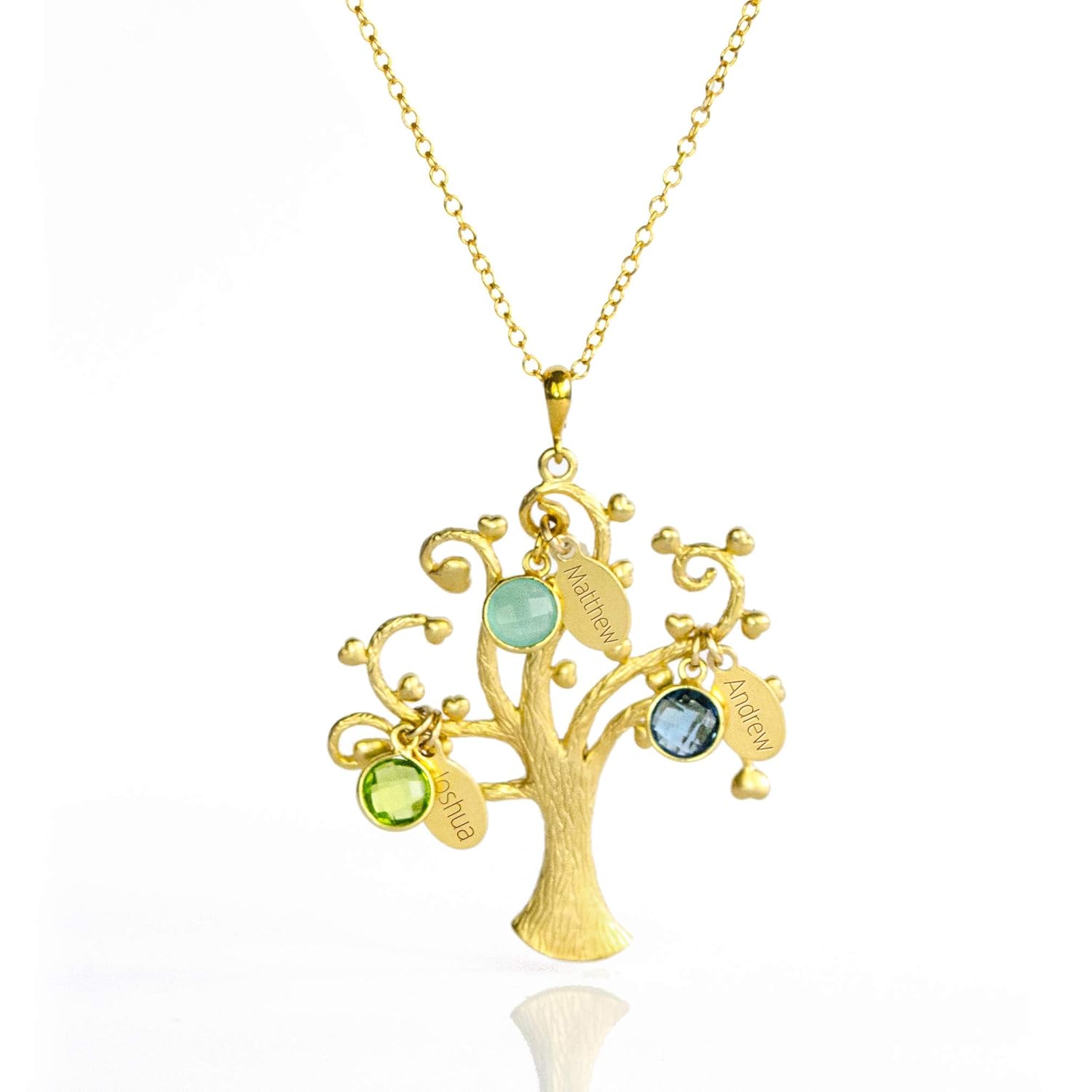 Amazon Com Family Tree Of Life Birthstone Necklace Jewelry With Kids Names Gifts For Mom Tpcswov Handmade