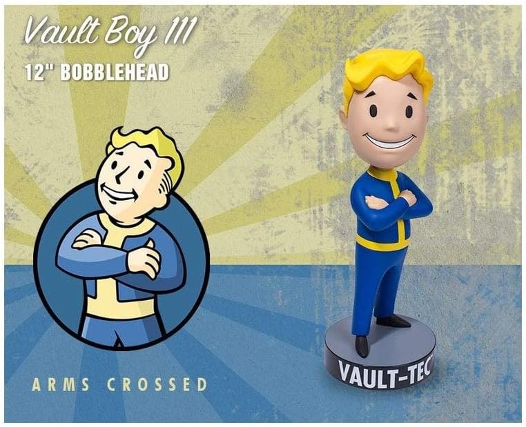 Amazon Com Gaming Heads Fallout 4 Bobble Head Vault Boy 111 Arms Crossed 30 Cm Peluches Toys Games