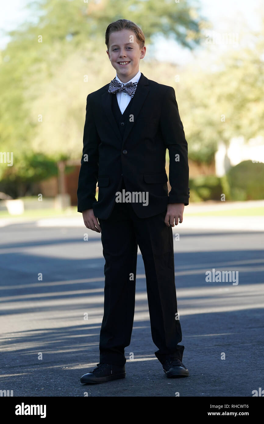Un Chico En Un Traje Con Pajarita Posa Para Un Retrato Fotografia De Stock Alamy