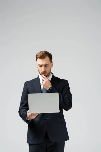 Empresario Chico De Traje Hombre Usa Una Computadora Portatil Foto Gratis