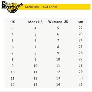 Dr Martens Footwear Size Chart At Dr Martens Australia Stockists Free Delivery Over $260. If you know that you are going to buy Dr Martens shoes it can be a good idea to use Dr Marten’s official shoe size charts instead of the general shoe size charts Below are shoe size charts for both men and women Women’s Shoe Size Chart System Women’s shoe sizes USA 5 6½ 7. About the Dr Martens brand Brand footwear Dr Martens or Doc Martens, and colloquially say Martensa shoes What characterizes their wellknown footwear an air cushion located in the heel of the footwear Martensa shoes were worn in the previous century at the turn of the 70s and 80s by subcultures pankas and skinheads.