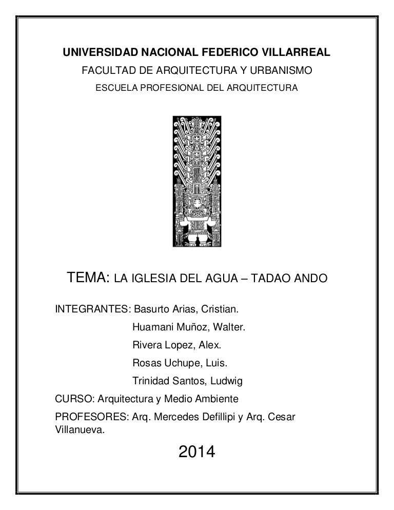 Tadao Ando (Osaka, Japón, 1941) es uno de los arquitectos más conocidos e influyentes de la actualidad Tadao Ando es un arquitecto atípico, con una personalidad propia y singular Obras que le definen son la Casa Azuma (Row House) (Osaka, 1976), el Complejo residencial Rokko (Kobe,), la Iglesia en el agua (Hokkaido, 19), la Iglesia de la Luz (Osaka, 19), el Pabellón japonés. TADAO ANDO Y LA IGLESIA DEL AGUA 1 July 22, 12 Footer text here14 PLANOS DE PLANTA, CORTES Y ELEVACIÓN 15 July 22, 12 Footer text here15 MAQUETA Crear un espacio para la contemplación y reflexión 16. 26abr16 Explora el tablero "arquitectura tadao ando" de Asunción Subiza, que 271 personas siguen en Ver más ideas sobre arquitectura, tadao ando, disenos de unas.