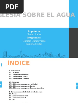 Scribd es red social de lectura y publicación más importante del mundo. Download Iglesia Del Agua Tadao Ando Comments Report "Iglesia Del Agua Tadao Ando" Please fill this form, we will try to respond as soon as possible Your name Email Reason Description Submit Close Share & Embed "Iglesia Del Agua Tadao Ando" Please copy and paste this embed script to where you want to embed. A finales de la década, en 1969, abrió su propio estudio de arquitectura “Tadao Ando Architect & Associates” en Osaka En los años 80, Ando diseñó tres iglesias dedicadas a los elementos naturales del viento, el agua y la luz La Iglesia del Viento fue construida en Kobe en 1986, la Iglesia del Agua en Hokkaido en 19 y la Iglesia de.