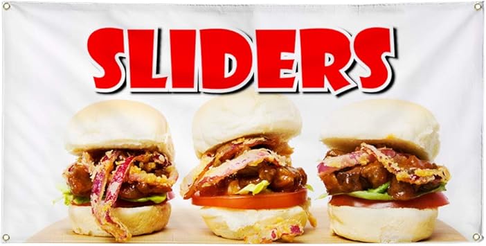 Amazon Com Vinyl Banner Multiple Sizes Sliders Restaurant Cafe Bar Restaurant Food Outdoor Weatherproof Industrial Yard Signs White 4 Grommets 24x48inches Office Products