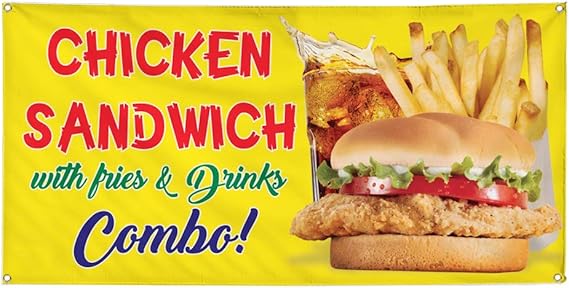 Amazon Com Vinyl Banner Multiple Sizes Chicken Sandwich Fries Drink Combo Business Outdoor Weatherproof Industrial Yard Signs Red 4 Grommets 16x40inches Office Products