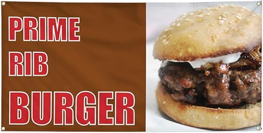 Amazon Com Vinyl Banner Multiple Sizes Prime Rib Burger Advertising Printing Restaurant Food Outdoor Weatherproof Industrial Yard Signs 4 Grommets 12x30inches Office Products