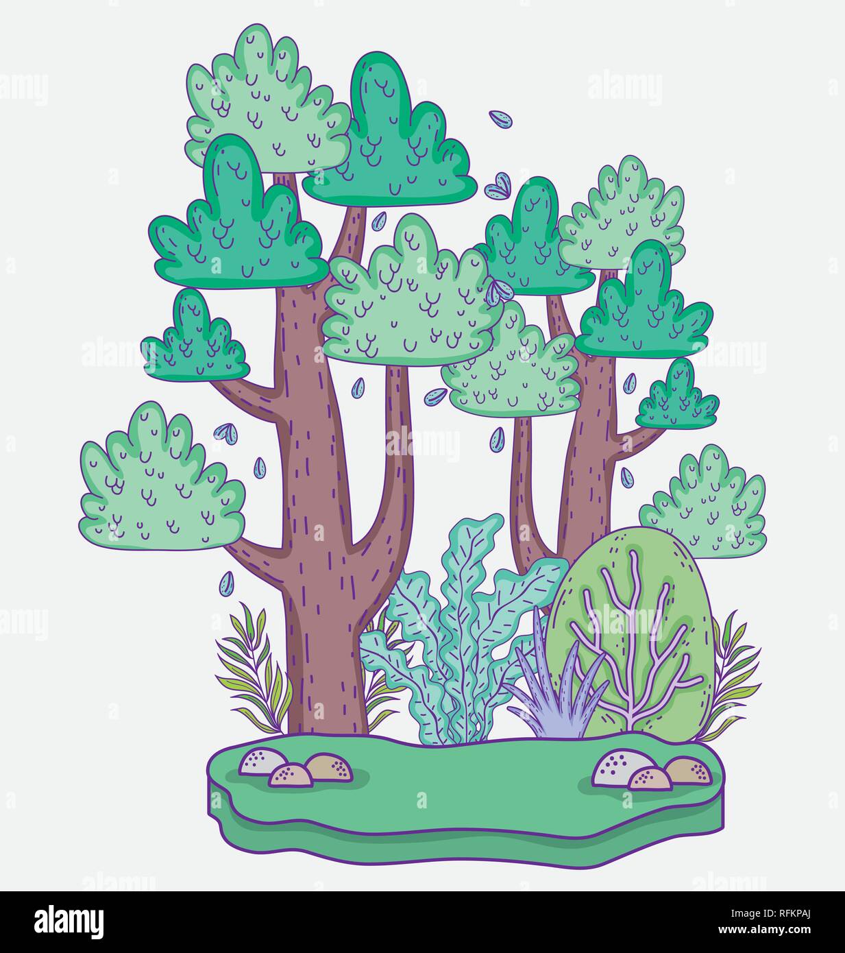 Naturaleza Arboles Con Hojas De Plantas Y Piedras Imagen Vector De Stock Alamy