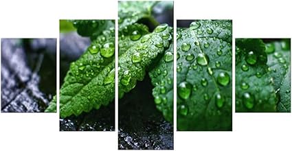 Kgkbh 5 Dibujos De Lienzo 5 Piezas De Hojas Verdes En Piedras Gotas De Agua Arte De La Pared Pintura Cuadros Impresion En Lienzo Botanico Para Amazon Es Hogar
