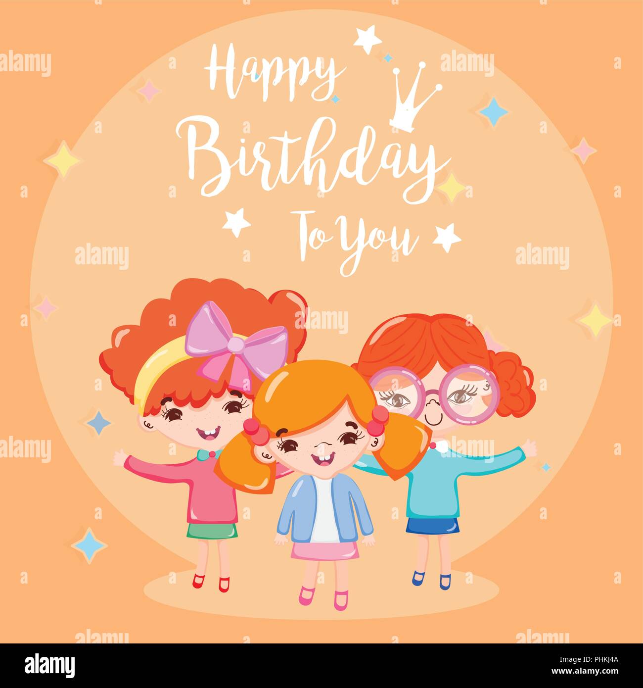 Feliz Cumpleanos Tarjeta Con Chicas Hermosas Caricaturas Ilustracion Vectorial Diseno Grafico Imagen Vector De Stock Alamy
