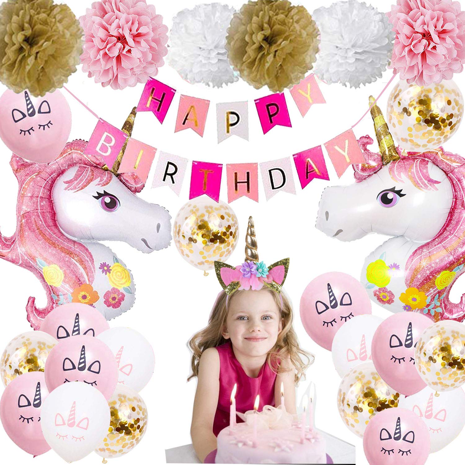 Costura Y Manualidades Lhasam Unicorn Balloons Suministros De Feliz Cumpleanos Con Enorme Unicornio Rosa Foil Balloons Birthday Band Bunting Confetti Latex Balloons Pom Poms Flor Ninas Unicornio Partido Decoraciones Chicas Hogar Y