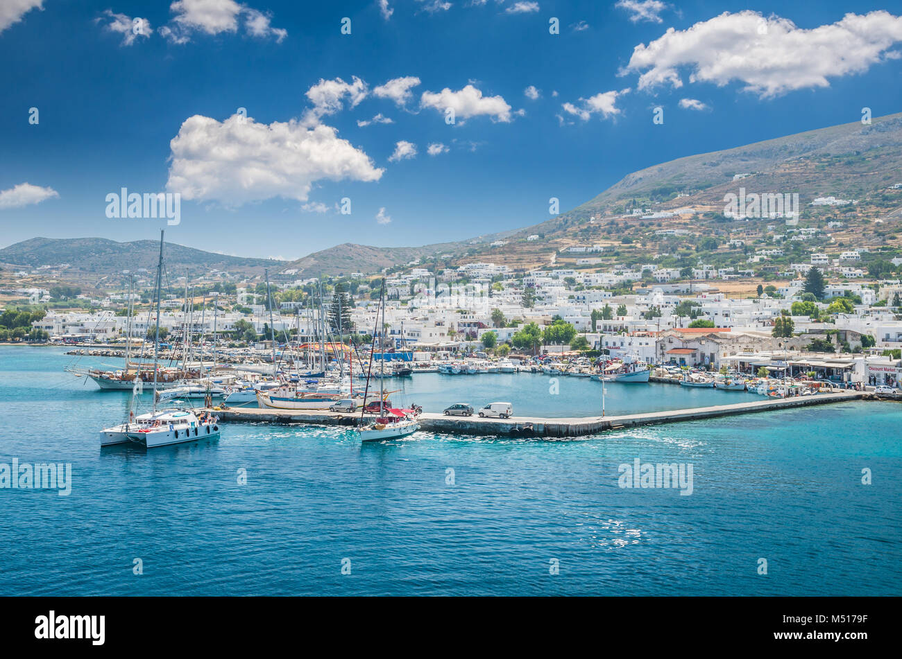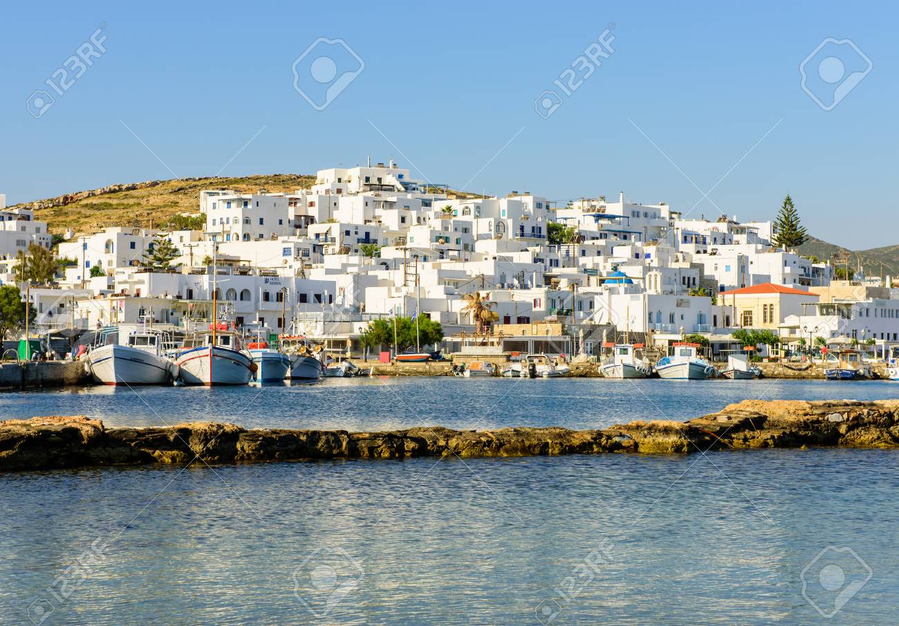 Hermosa Vista De La Ciudad De Parikia En La Isla De Paros Grecia Las Islas Cicladas Hay Casas Blancas Y Barcos En El Puerto Viejo Fotografia De Stock Alamy