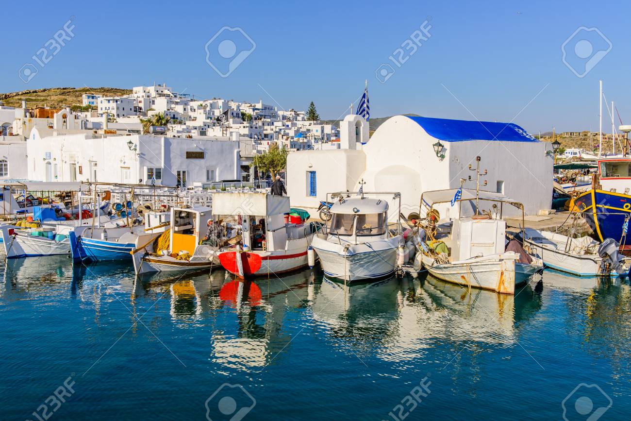 Grecia Paros Islas Griegas Naoussa Cyclades Europa Barcos Pesqueros Atraco En Naoussa Puerto En Paros Isla En El Egeo Sea Coleccion De Foto U Fotosearch