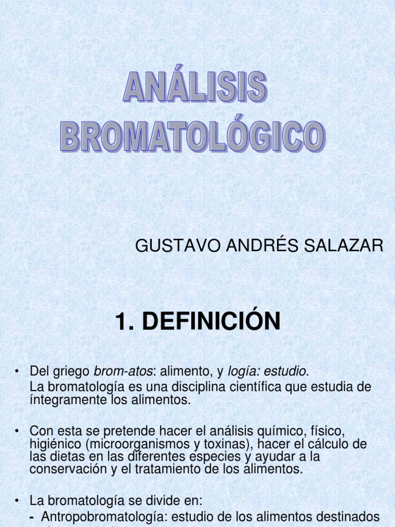Gustavo Andres Salazar 1 Definicion Del Griego Brom Atos Alimento Y Logia Estudio La Bromatologia Es Una Disciplina Cientifica Que Estudia De Integramente Ppt Descargar