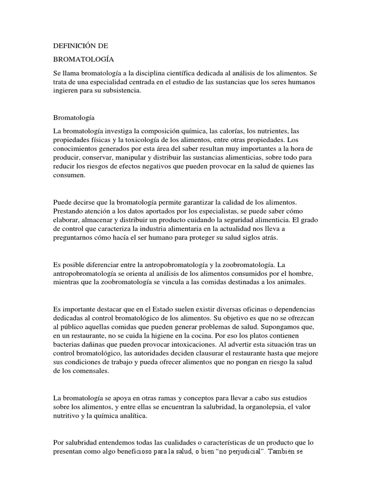 Definiciones Bromatologia Estudio De Los Alimentos Antes De Ser Ingeridos X El Animal Bromos Alimento Logos Tratado O Ciencia Pdf Free Download