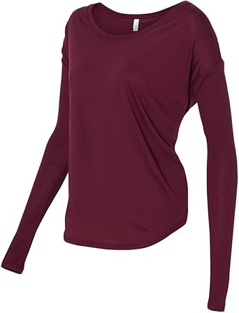 Bella Canvas Womens Flowy Long Sleeve T Shirt With 2x1 Sleeves 52 Maroon At Amazon Women S Clothing Store