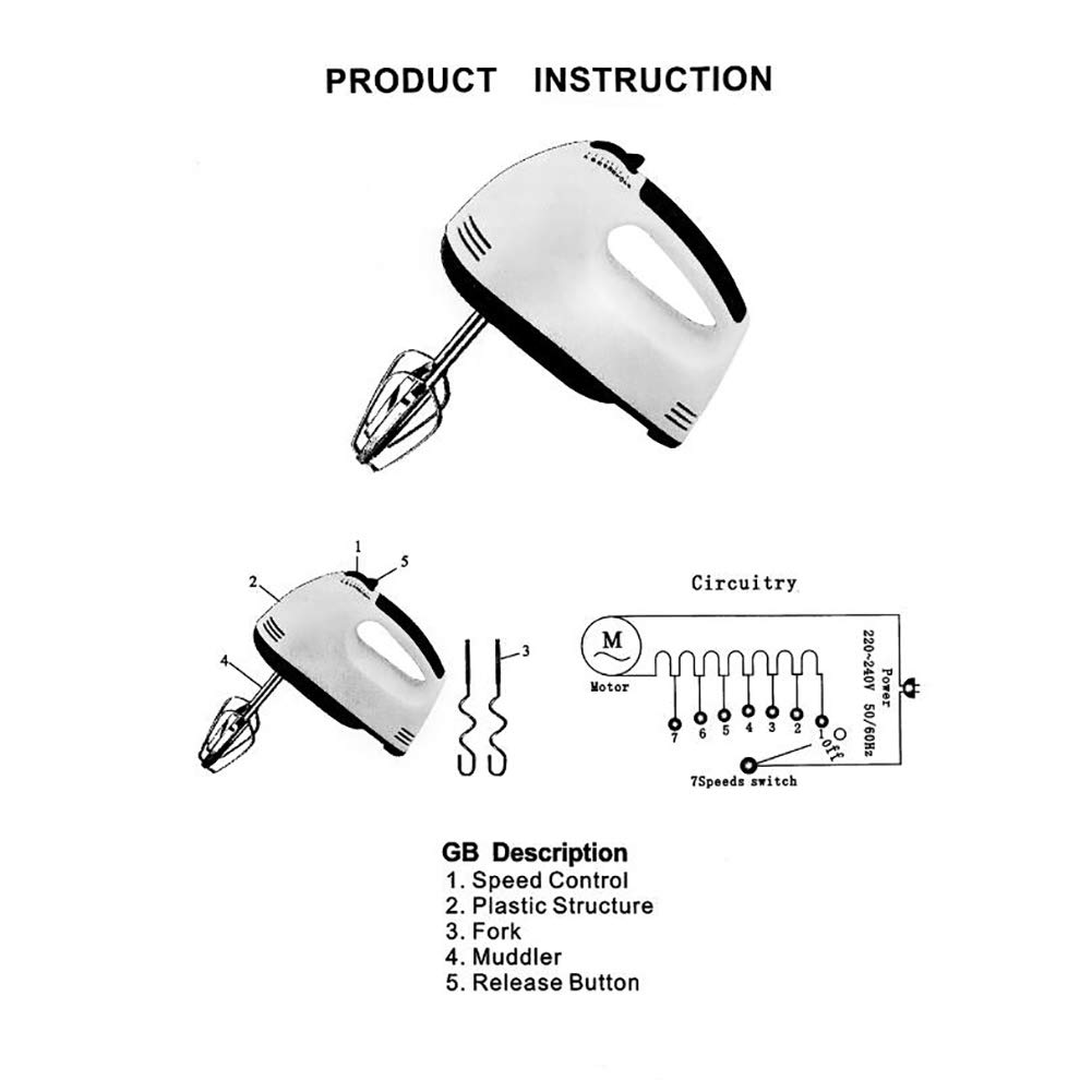 Fghtl Mezclador Manual Mezclador Cocina Electrico 7 Velocidades Batidor Huevo Procesador Alimentos Mezclador Cocina 100 W Mezclador Pastel Batidor Mano Batidora Huevo Herramientas Inicio Batidoras Amasadoras