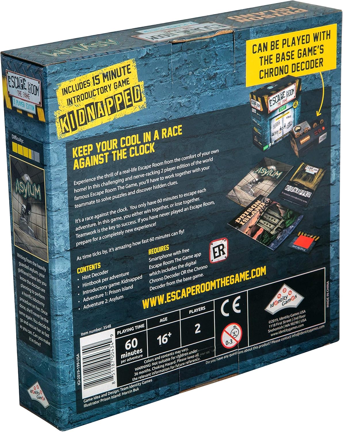 In this game, you win together or lose together Each player must excel and do their part Teamwork is the magic word in solving all the riddles and puzzles in time If you've never played an escape room before, be ready you can't imagine how fast 60 minutes will pass in the heat of the moment Contents Chrono Decoder;. Keep your cool in a race against the clock!. Feel the tension of an Escape Room in your own living room!.