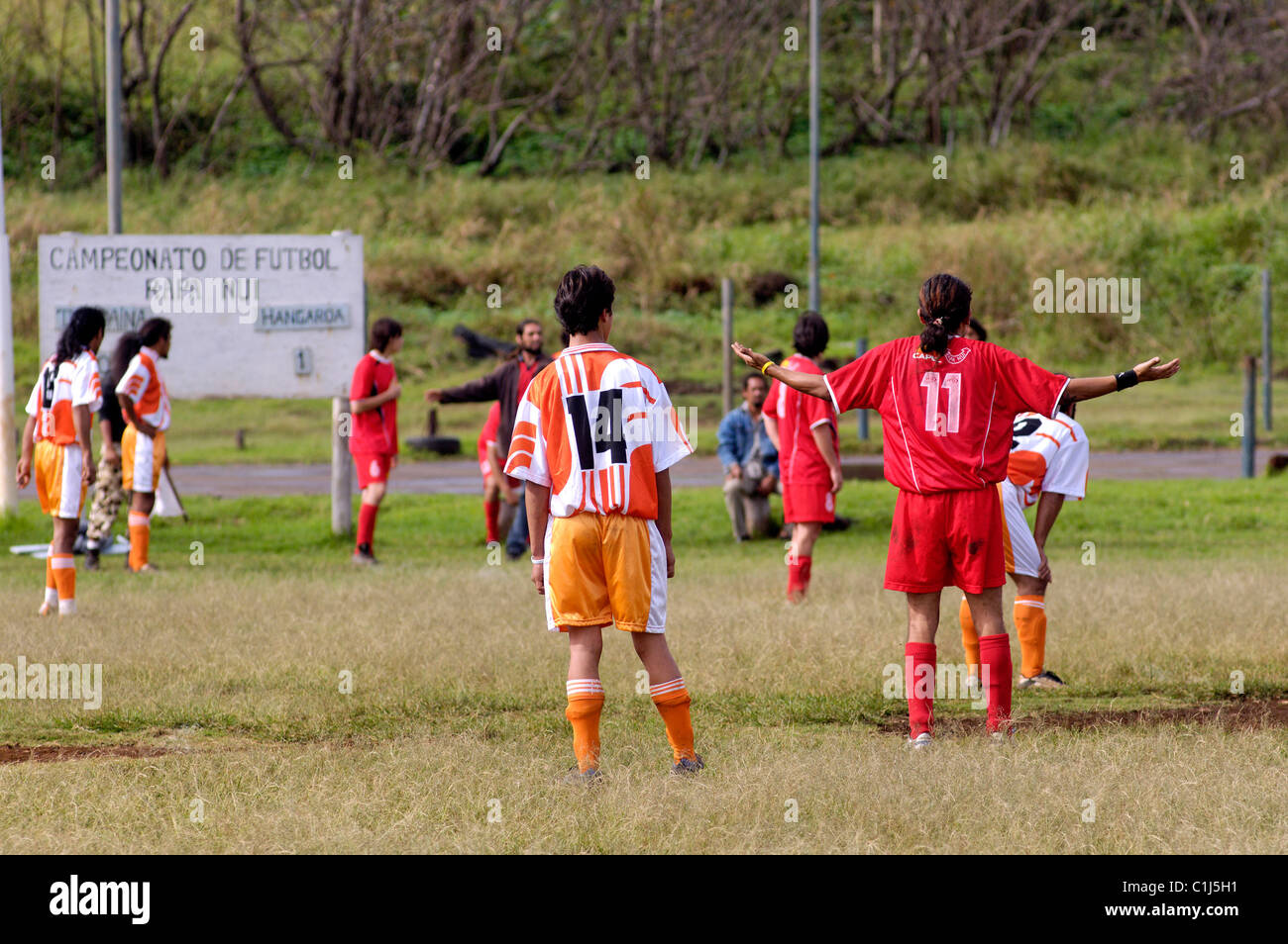 Chile Isla De Pascua La Ciudad De Hanga Roa Juego De Futbol Fotografia De Stock Alamy