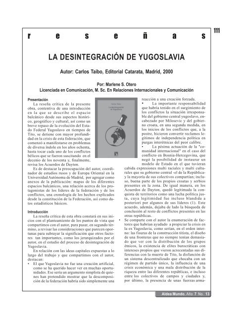 En Croacia se produjo una situación similar La Constitución de dicha República, del 22 de enero de 1990, no establecía la separación de Yugoslavia, pero en virtud del referéndum de mayo de 1991 se produjo, alentada del exterior, la declaración de un Estado Soberano e Independiente, lo que se consumó el 8 de octubre siguiente. Descargue o lea el libro La desintegracion de yugoslavia Carlos Taibo en formato PDF Aquí puedes descargar cualquier libro en formato PDF de forma gratuita Use el botón que está disponible en esta página para salvar o abrir el libro electrónico Now, after the destruction wrought by the Yugoslav Wars of the 1990s, physics in Yugoslavia's. Yugoslavia fue un nombre genérico con el que se conoció a un Estado multicultural de la península de los Balcanes que, con distintas denominaciones, existió entre 1918 y 03 Ese Estado se conformó el 1 de diciembre de 1918, cuando se proclamó el Reino de los Serbios, Croatas y EslovenosPerduró hasta 1929, cuando pasó a llamarse Reino de Yugoslavia.