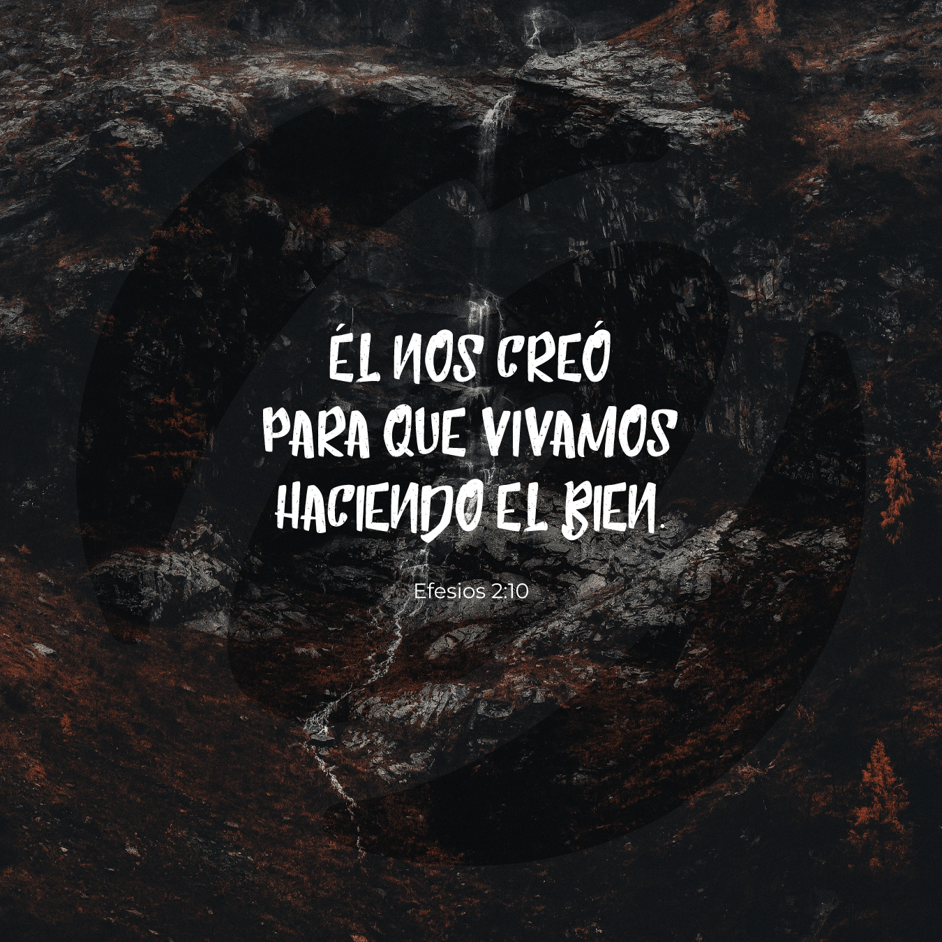 Efesios 210 Porque somos hechura suya, creados en Cristo Jesús para hacer buenas obras, las cuales Dios preparó de antemano para que anduviéramos en ellas Referencia Cruzada. Efesios 210 En este versículo, al leer la parte ¨Porque somos hechura de Dios, creados en Cristo Jesus¨ nos habla de nuestro único origen que es Dios, nosot. Efesios 210 NTV Pues somos la obra maestra de Dios Él nos creó de nuevo en Cristo Jesús, a fin de que hagamos las cosas buenas que preparó para nosotros tiempo atrás NTV Nueva Traducción Viviente.