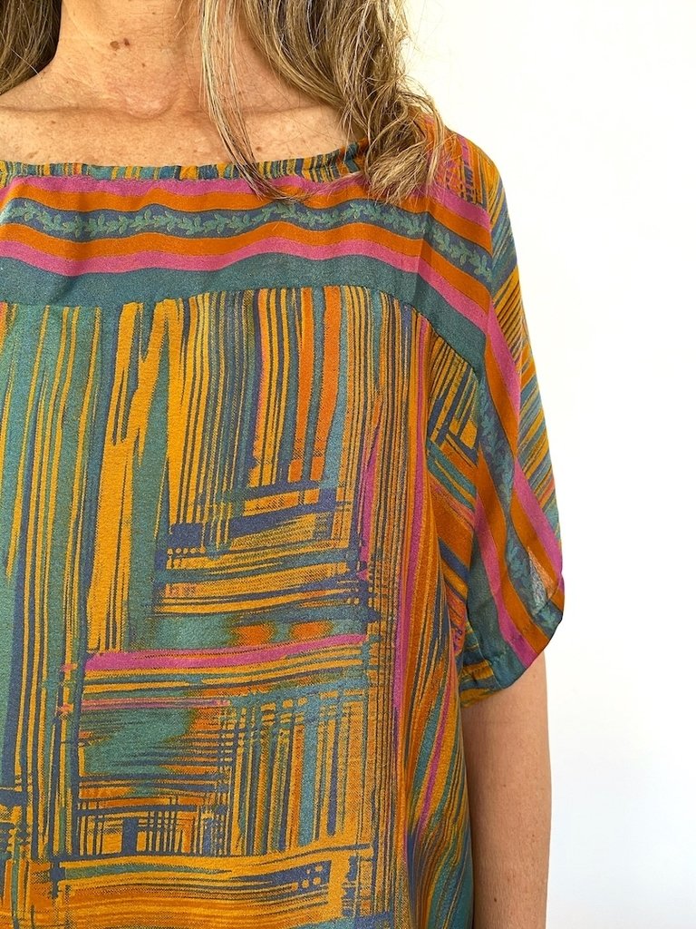 Camisa De Seda Con Mangas Anchas Para Mujer
