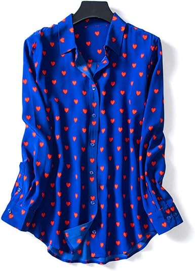 Amazon Com Qyqcx Camisa Estampada En Forma De Corazon Camiseta De Manga Larga De Seda Para Mujer Chic Overalls Blusa Casual Azul Clothing