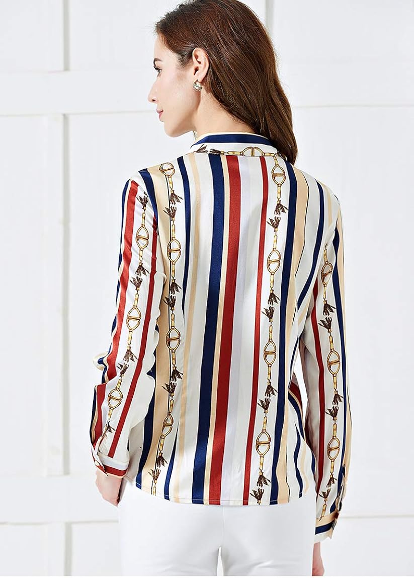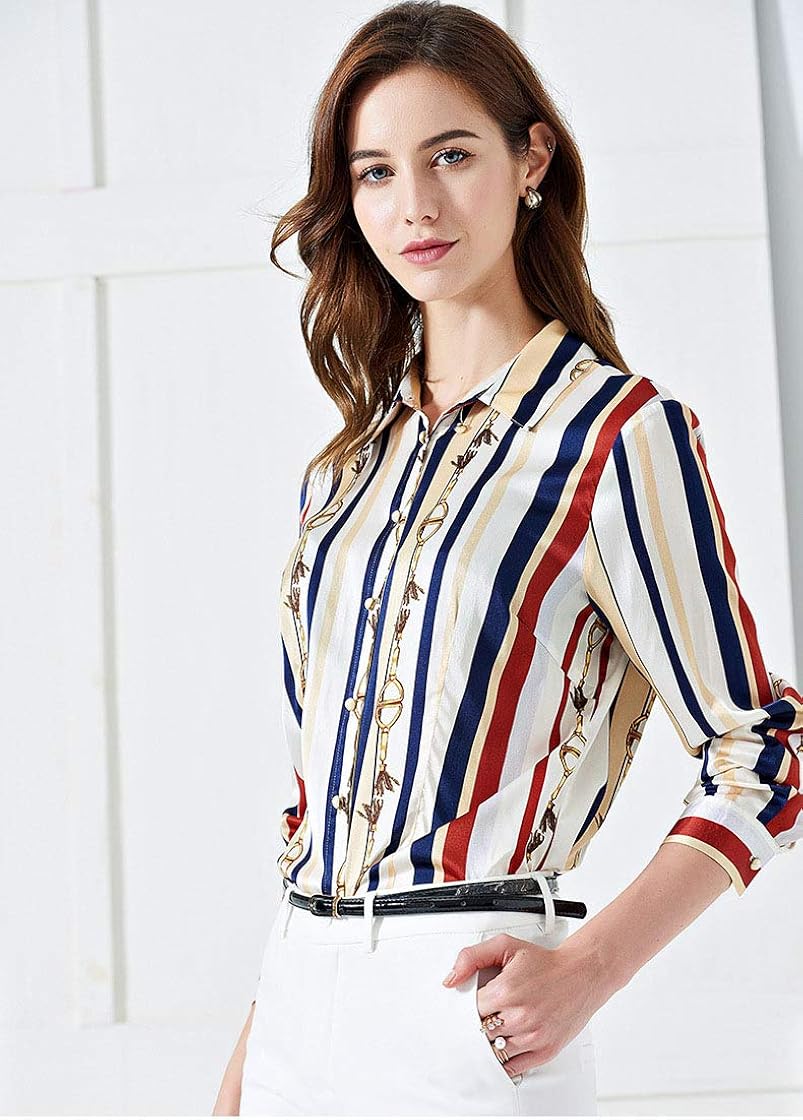 100 De Seda De Morera Blusas De Saten Camisa De Manga Larga Para Mujer Blusas De Verano De Rayas Delgadas Para Mujer Camisa Estampada Personalizada Para Mujer Jamiiprime Store