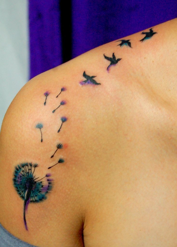 Tatuaje En El Hombro Diente De Leon Con Pequenos Pajaros Tattooimages Biz