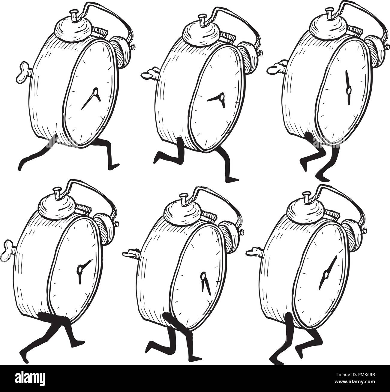 Dibujo Dibujo Ilustracion Estilo De Secuencia O Ejecutar Un Ciclo De Reloj Despertador Vintage Correr O Trotar Vistos De Lado Sobre El Aislamiento Del Fondo Imagen Vector De Stock Alamy