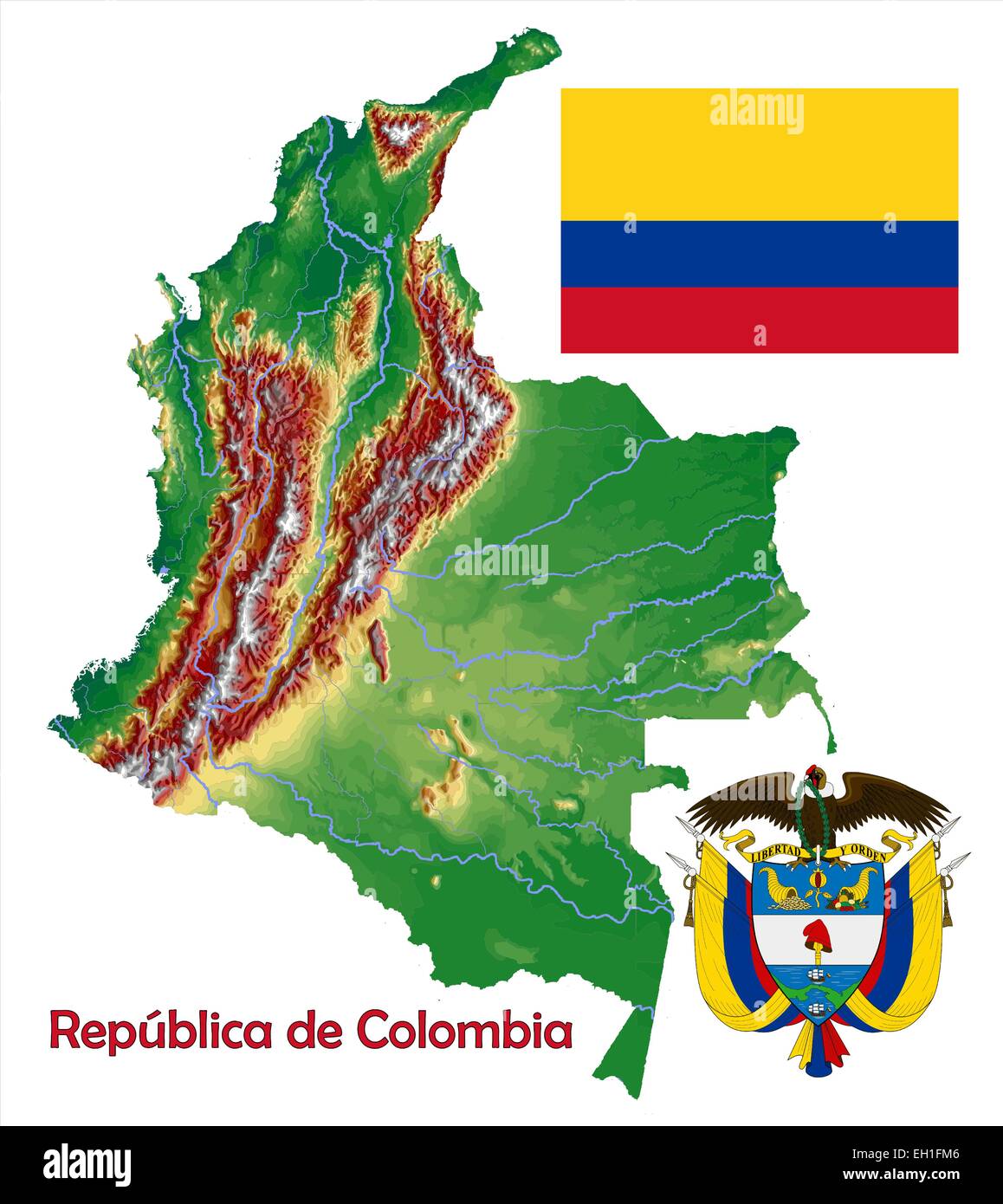 Mapa De Colombia Bandera Escudo Imagen Vector De Stock Alamy