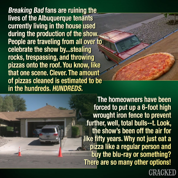 Vince Gilligan Begs Breaking Bad Fans To Stop Throwing Pizza On Walter White S House Stop It Please 9gag