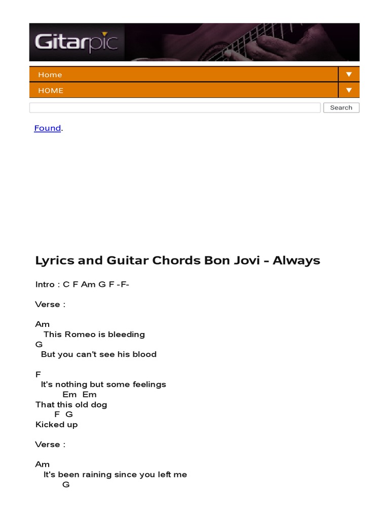 Tmp 1960 Lyrics And Guitar Chords Bon Jovi Always Html Song Structure Vocal Music
