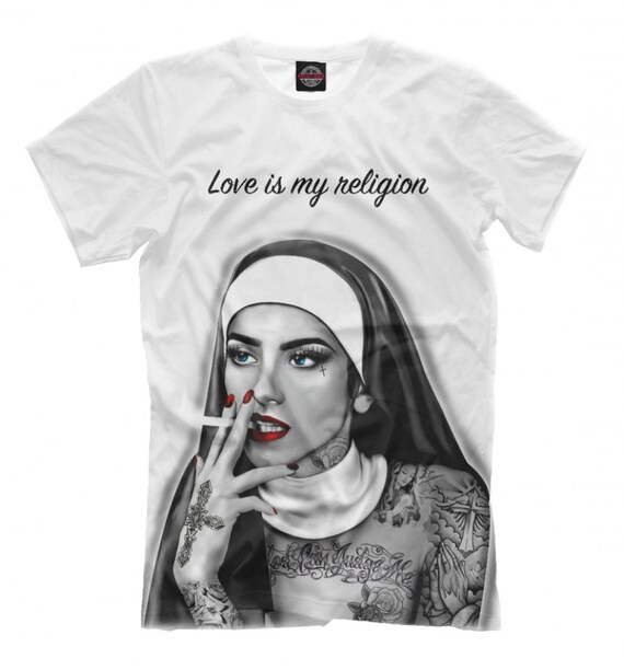 Sexy Nun Love Is My Religion T Shirt High Quality Microfiber Etsy