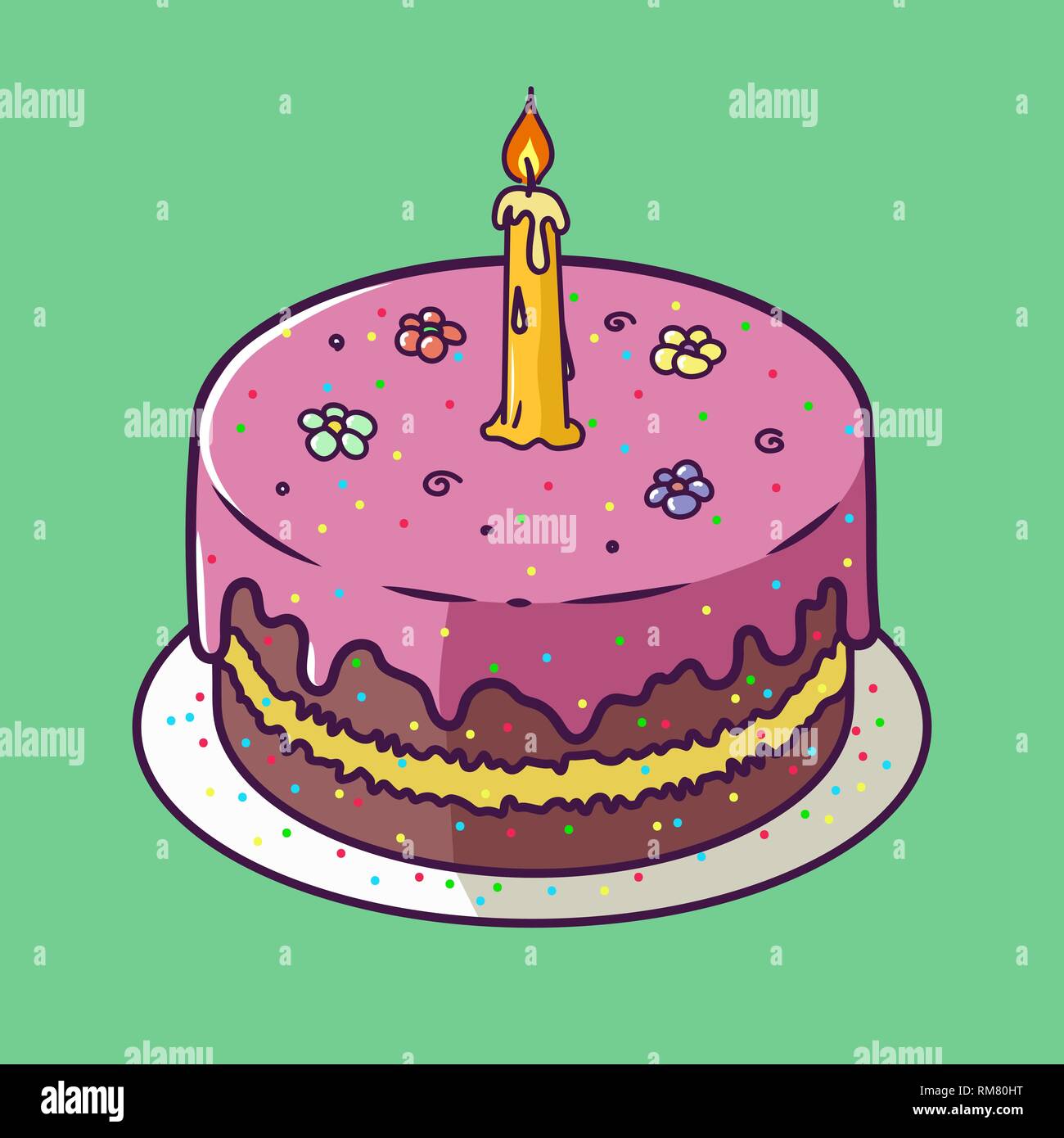 Feliz Primer Aniversario Cumpleanos Tarjeta Con Cupcake Y Vela En Estilo De Diseno Plano Ilustracion Vectorial Imagen Vector De Stock Alamy