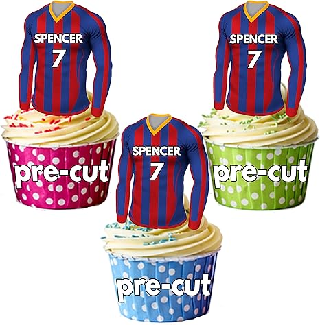 Ak Giftshop Precutut Camisas De Futbol Comestibles Personalizables Con Tu Nombre De Gallina Number Adornos Para Cupcakes Decoraciones Para Tartas Colores De Barcelona Paquete De 12 Amazon Es Hogar