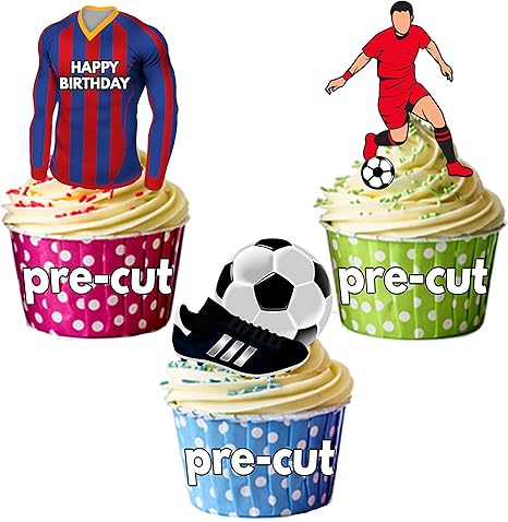 Ak Giftshop Precututhappy Birthday Football Party Pack Pack De 12 Decoraciones Comestibles Para Cupcakes Diseno De Barcelona Amazon Es Hogar