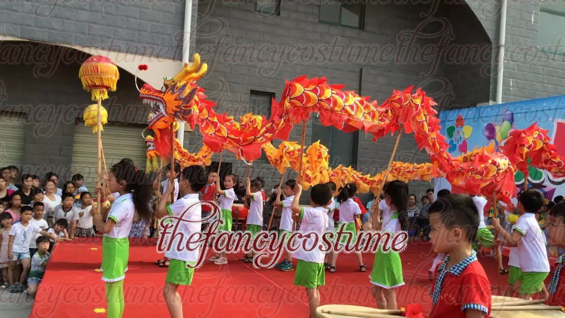 Oro Amarillo Ninos Dragon Chino Danza Disfraz Festival Folk 5 5m 6 Ninos Ebay